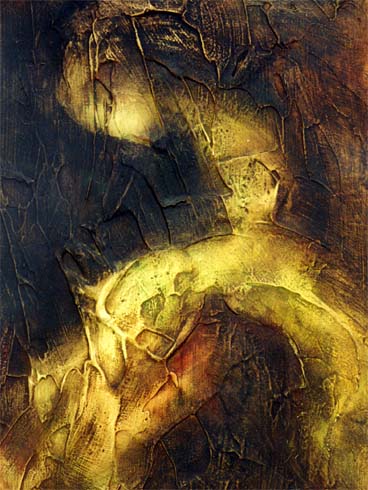 Our Abstract Paintings are often a combination of expressionism and symbolism, reflecting both the figurative and nonfigurative aspects of our concept. Scale vary from 3' by 2' to 8' by 4'. Deeply textured and washed with oils, these paintings are related to our Freestanding paintings.